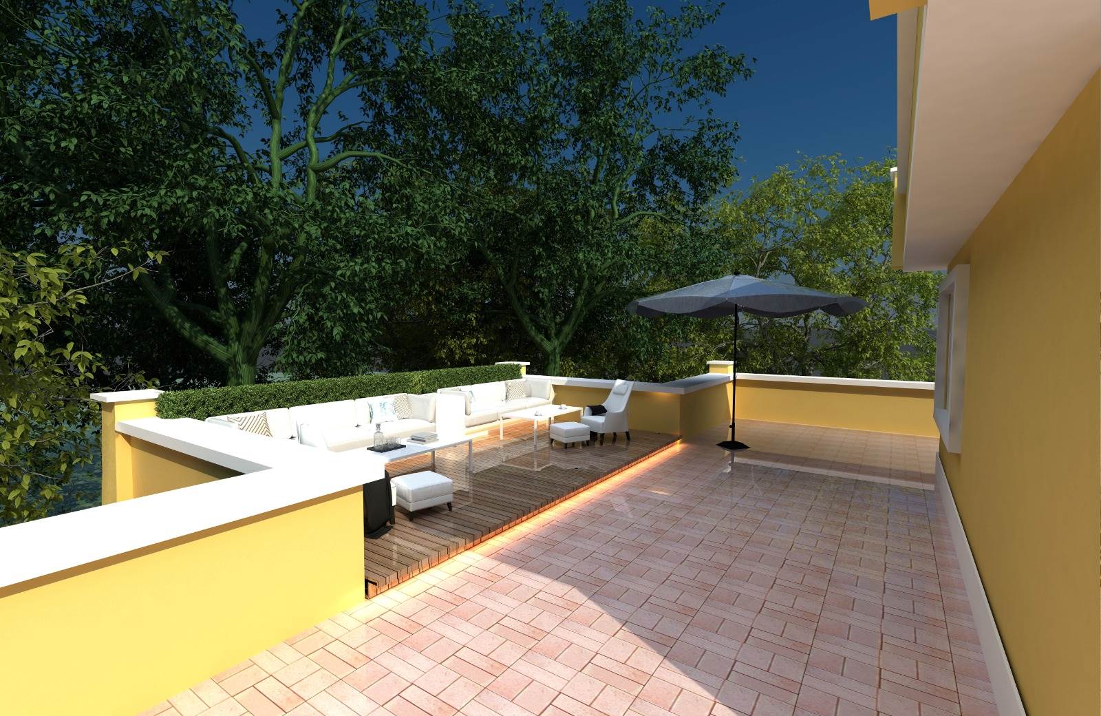 Attualmente sono disponibili: quattro villini al piano terra con ingresso indipendente e giardini angolari privati di circa 100/150, ed un Attico al primo piano con terrazza perimetrale di 200 mq circa distribuito su 4 lati, con giardinetto privato ed entrata indipendente.