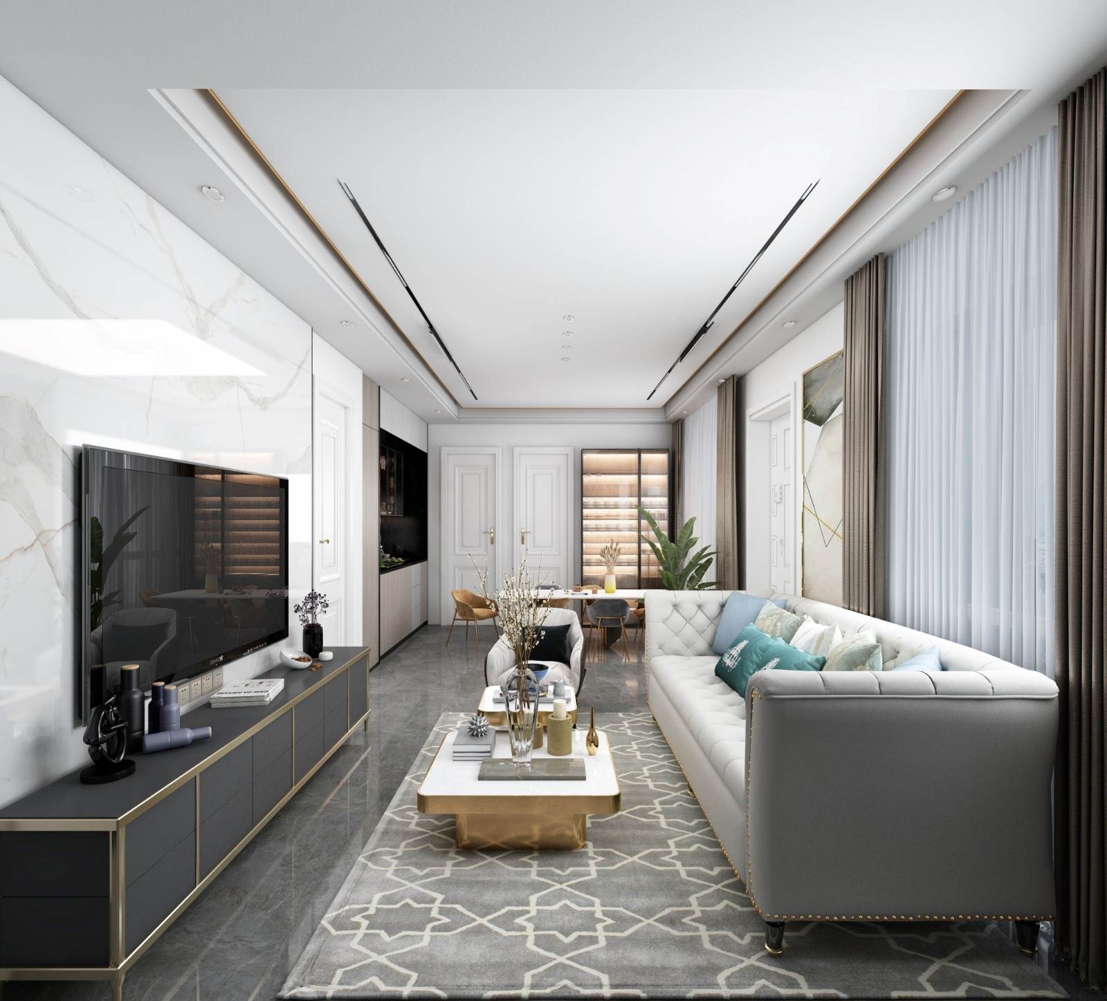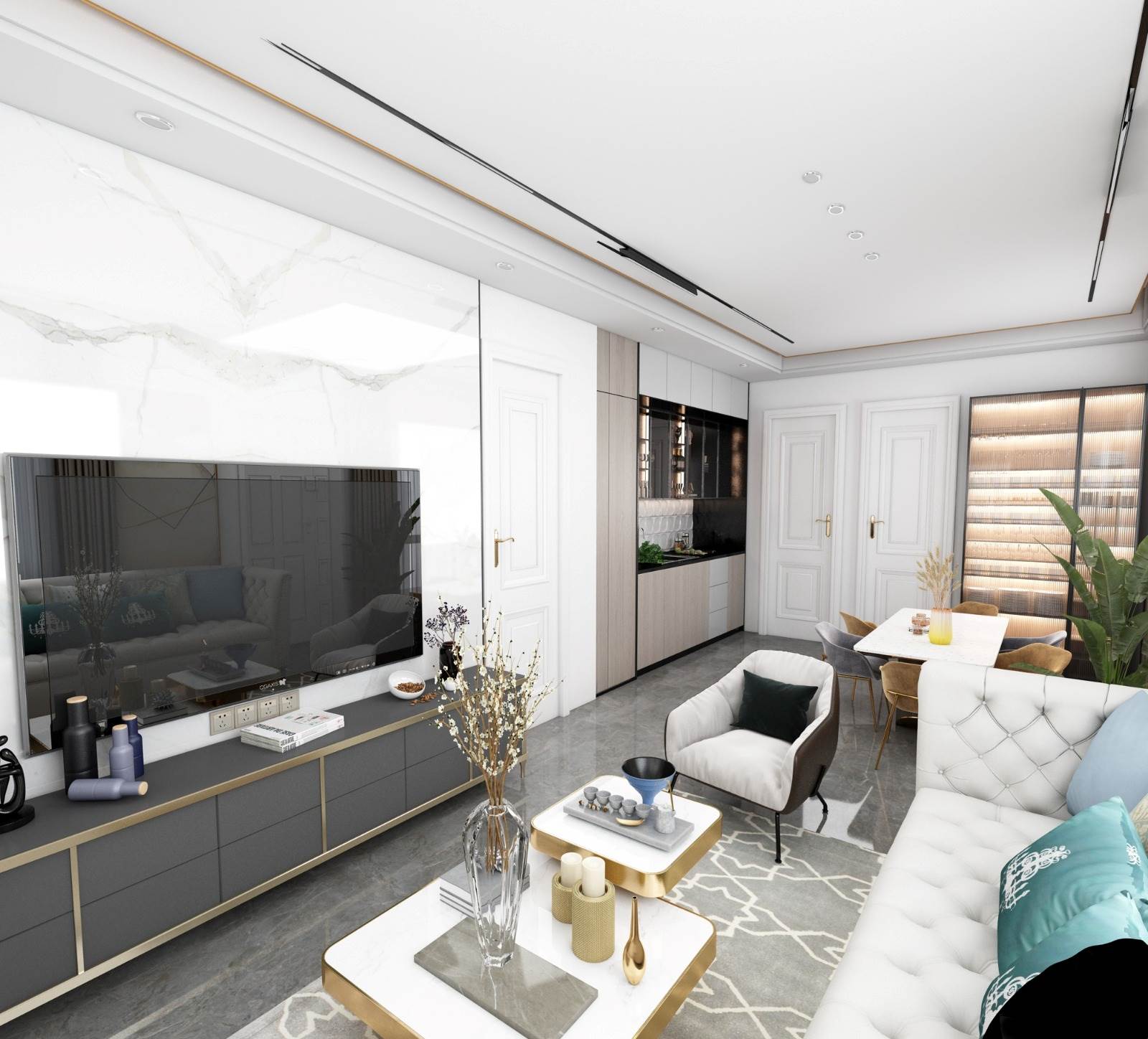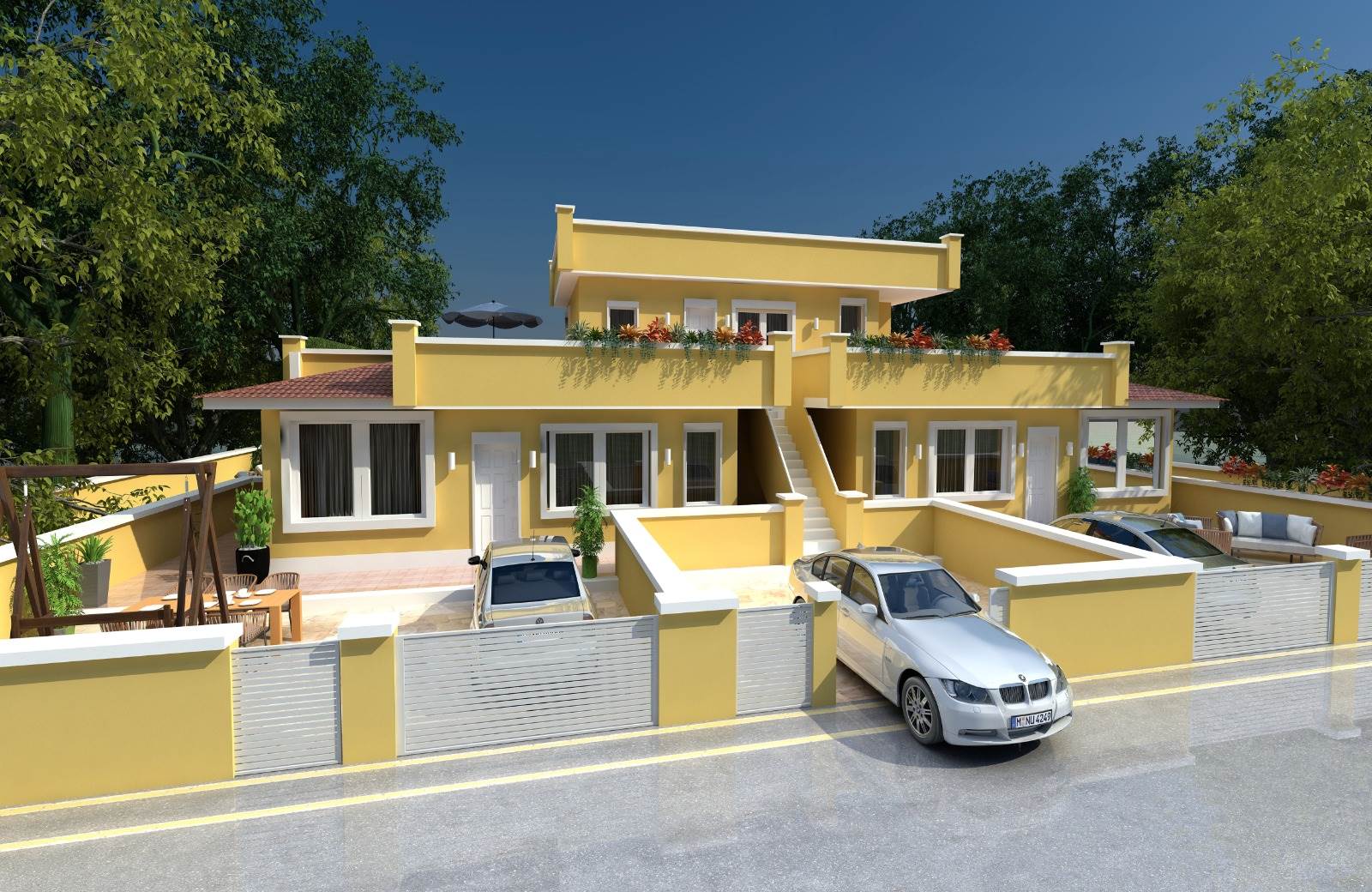 Ogni unità abitativa internamene è così composta: soggiorno, cucina, due camere e due bagni. Oltre un posto auto scoperto.