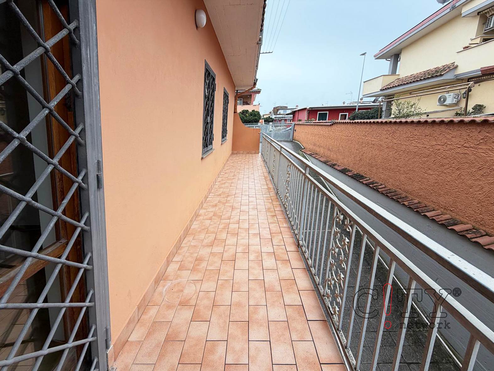 L'immobile al piano terra rialzato, si presenta in buone condizioni ed è composto da un doppio soggiorno con camino, da una cucina abitabile, doppi servizi, due camere matrimoniale, una cameretta e due balconi.