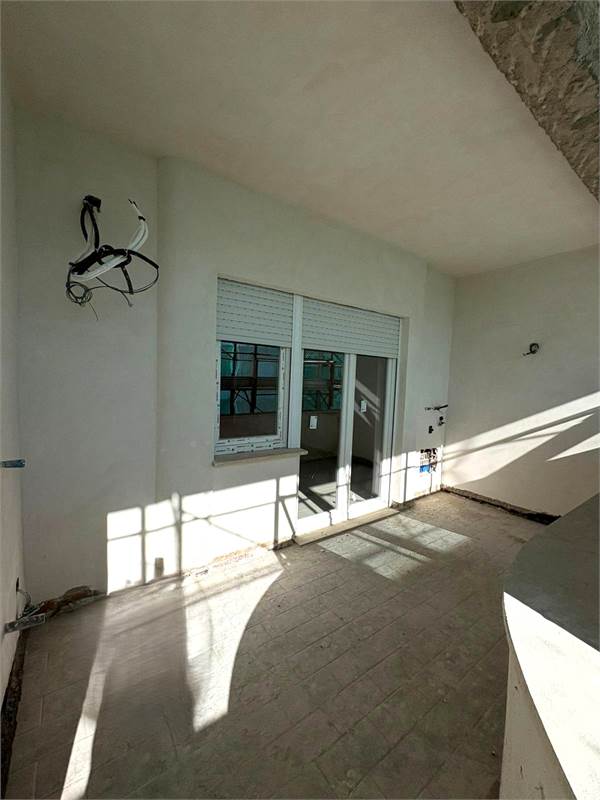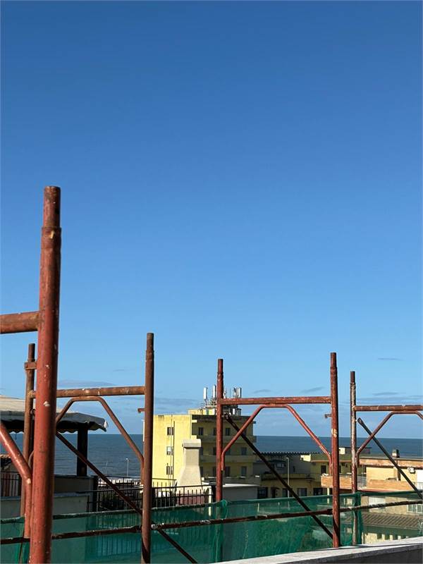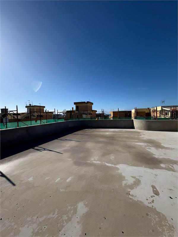 L'attico internamente è composto da un soggiorno-pranzo, con affaccio su un primo balcone, disimpegno, da una cucina abitabile con affaccio su un secondo balcone, due camere letto ed un comodo bagno con finestra; è inoltre dotato, al piano superiore, di una terrazza a lastrico solare panoramica di ben 100 mq, di una cantina e di un grande box auto.
