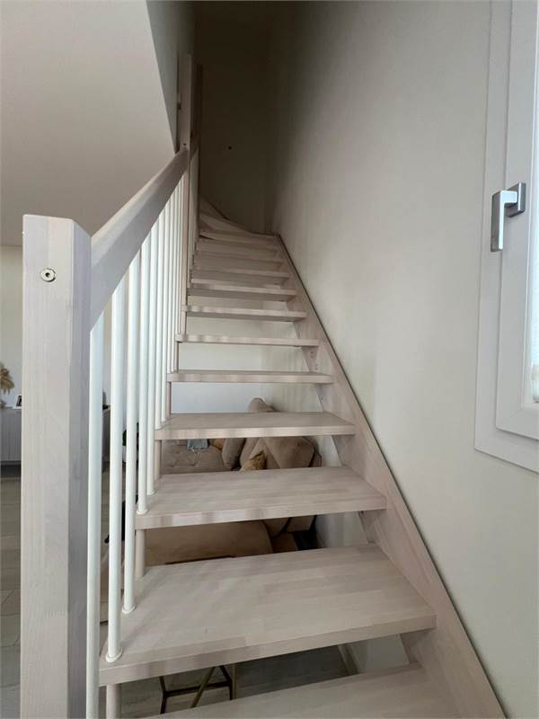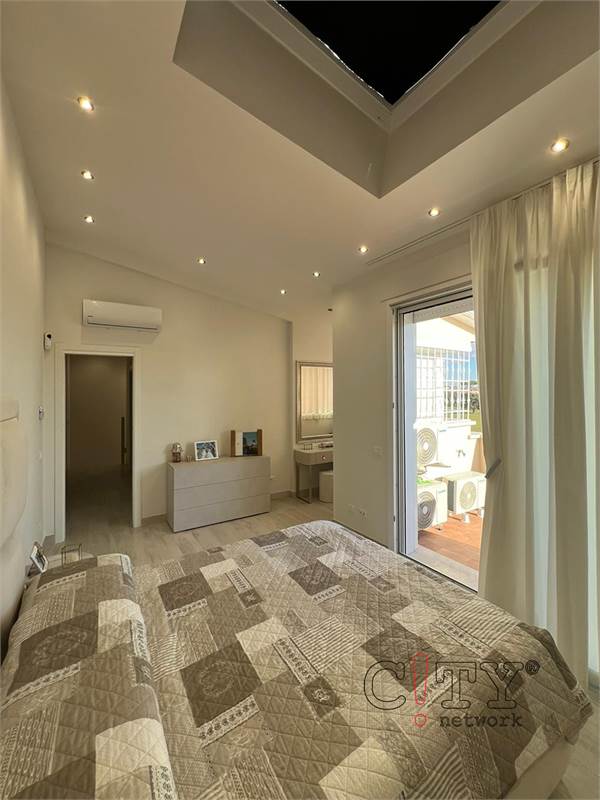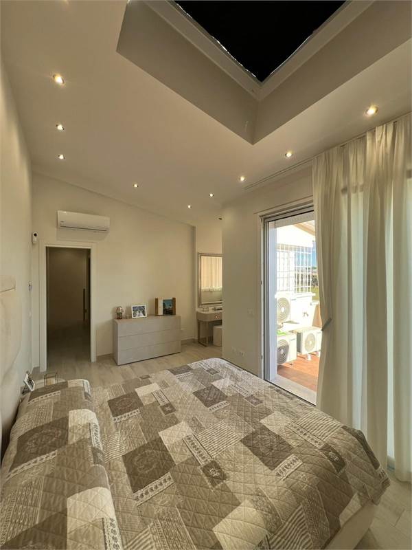 L'immobile si sviluppa su due livelli fuori terra ed è composto da: un giardino al piano terra con entrata indipendente, la scala interna ci collega al primo piano dove al suo interno ci accoglie un grande e luminoso soggiorno, una cucina abitabile, una camera matrimoniale, un bagno ed un balcone; al piano superiore è stata realizzata una seconda zona notte dove troviamo due camere, un bagno con doccia, oltre balcone vista mare.
