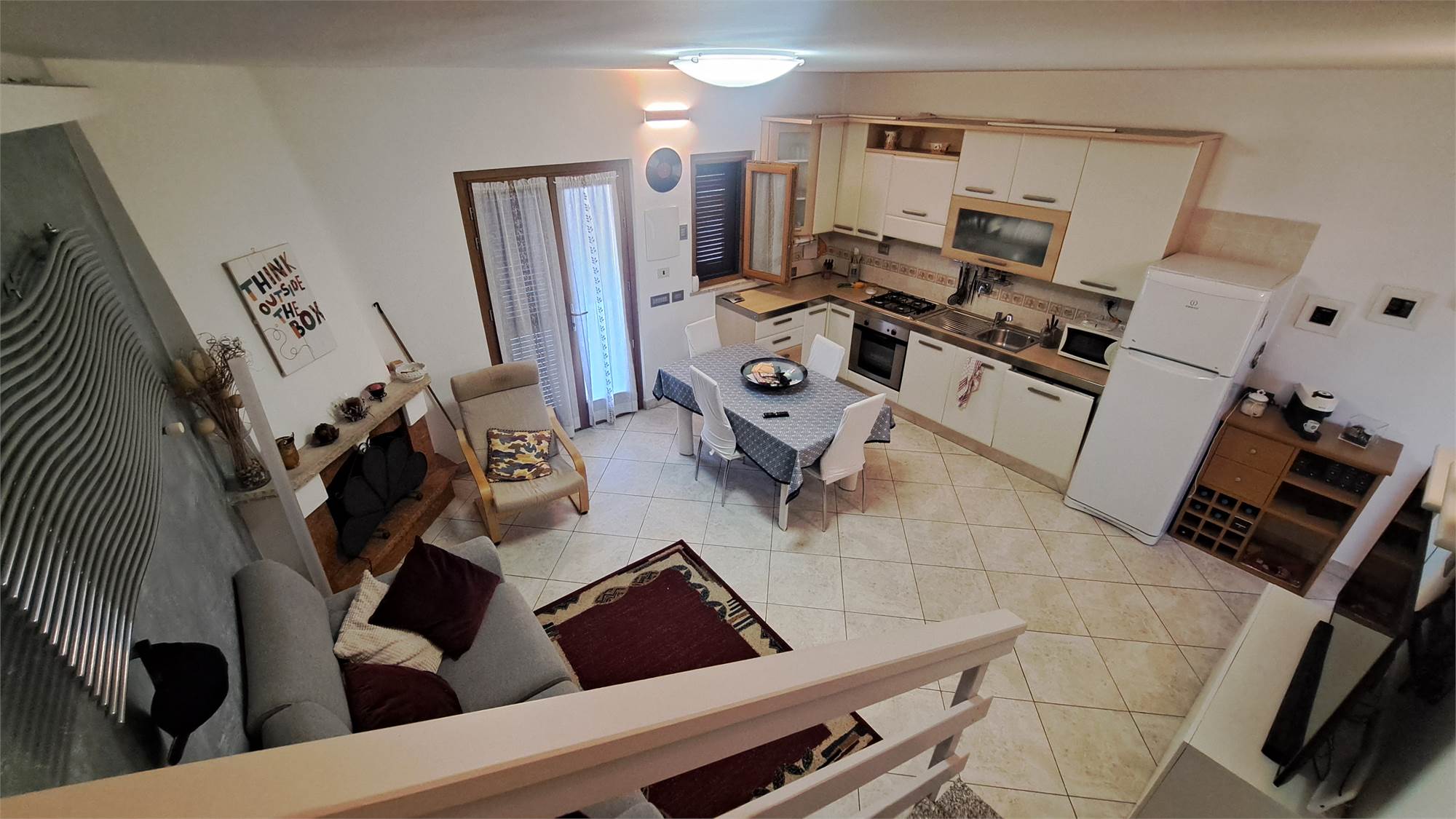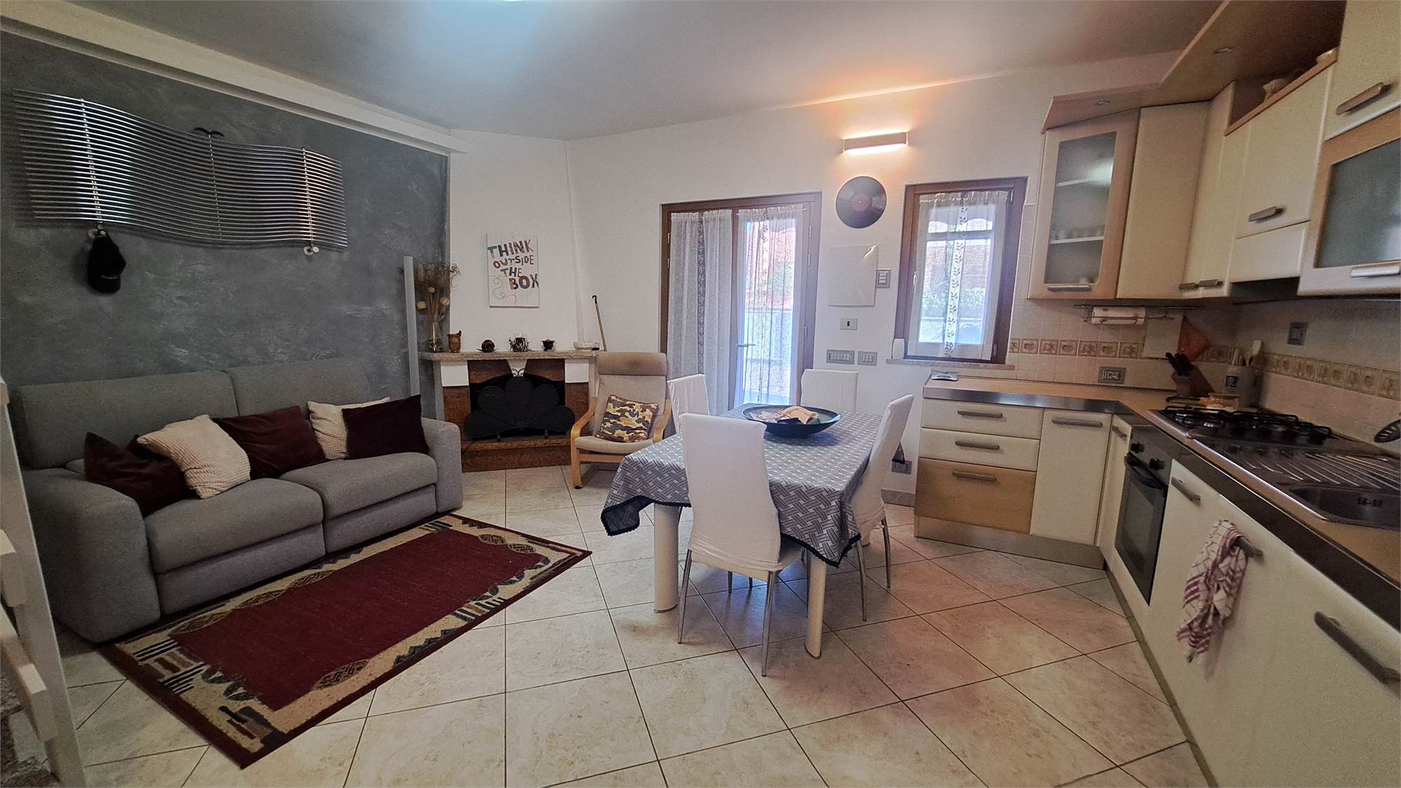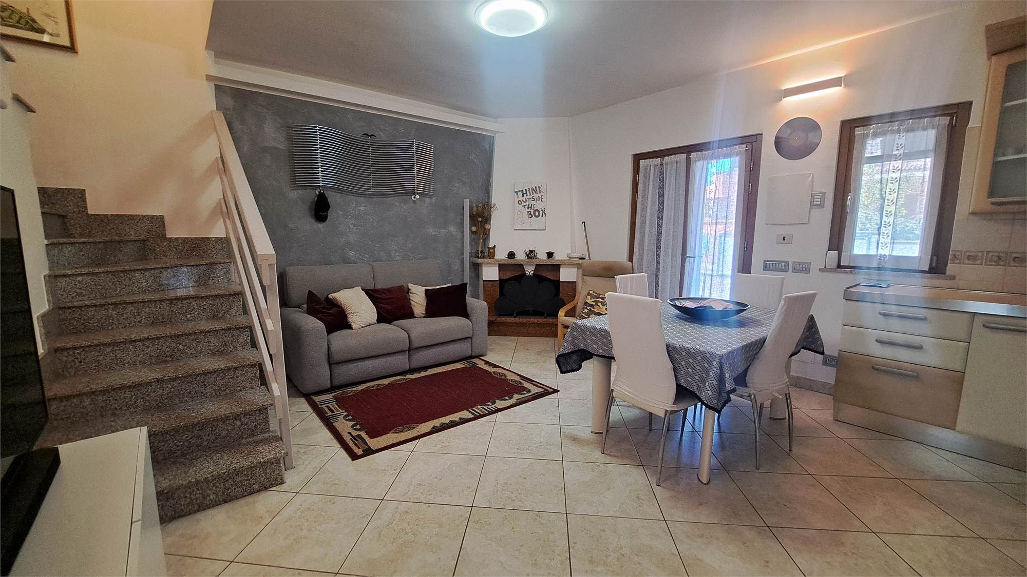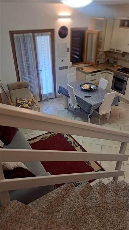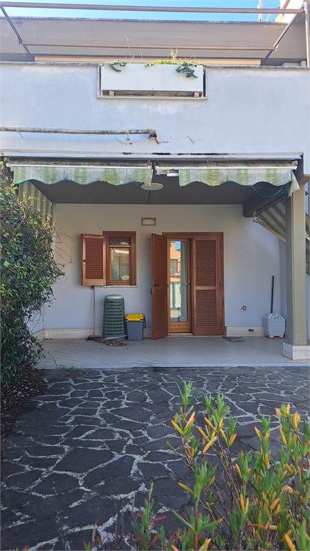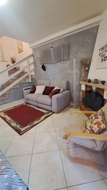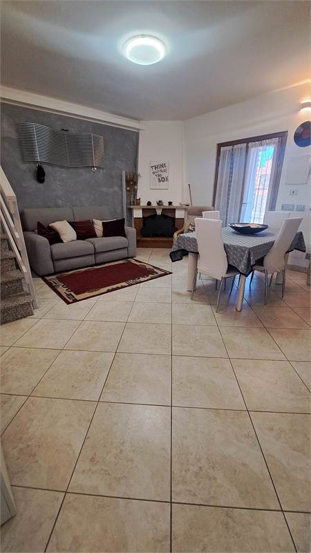 Al piano terra troviamo un soggiorno luminoso con cucina a vista e camino, un bagno di servizio, due comode verande e giardino privato fronte e retro. in parte piastrellato, con possibilità di parcheggiare la propria autovettura all'interno; la scala interna conduce al piano superiore dove si sviluppa la zona notte composta da una camera matrimoniale, una cameretta con armadio a muro, da un bagno finestrato con doccia e da una ampia terrazza vivibile.